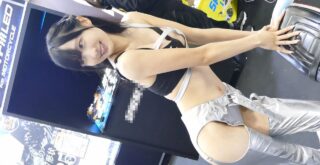 31分も野良猫のようにボンネットでポーズを取るダラしないハミ毛コンパニオン